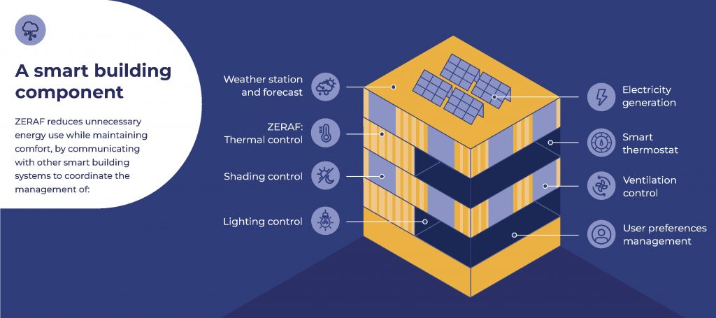 By integrating data from weather stations and forecasts, on‑site electricity generation, and user preferences, ZERAF aims to optimize how buildings respond to changing environmental conditions and occupants’ needs. At this stage, the project is focused on the development and validation of the façade technology that enables this vision.